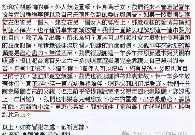 这位"太子爷"的话术号称一绝。他不说"琼瑶非论病重的父亲",而是说"感谢印尼督察的治理";不说"琼瑶抢走我父亲",而是说"设立在伤害上的神气不值得颂赞"。这些话,说得多么老卵不谦啊!