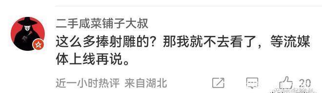 还有网友示意“”这样多捧射雕的?那我就不去看了,等流媒体上线再说。”