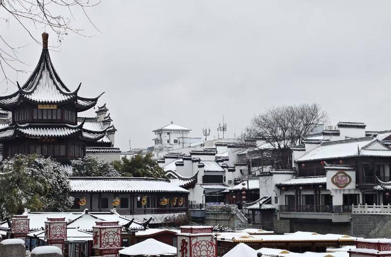 1月19日,南京终于盼来降雪,雨夹雪序曲自北向南铺开,夜间多地飘雪。1月20日,南京多处名胜做事还是积雪,明孝陵、鸡鸣寺、秦淮河两岸隐敝上白雪,让东谈主已而嗅觉穿越回“金陵”。