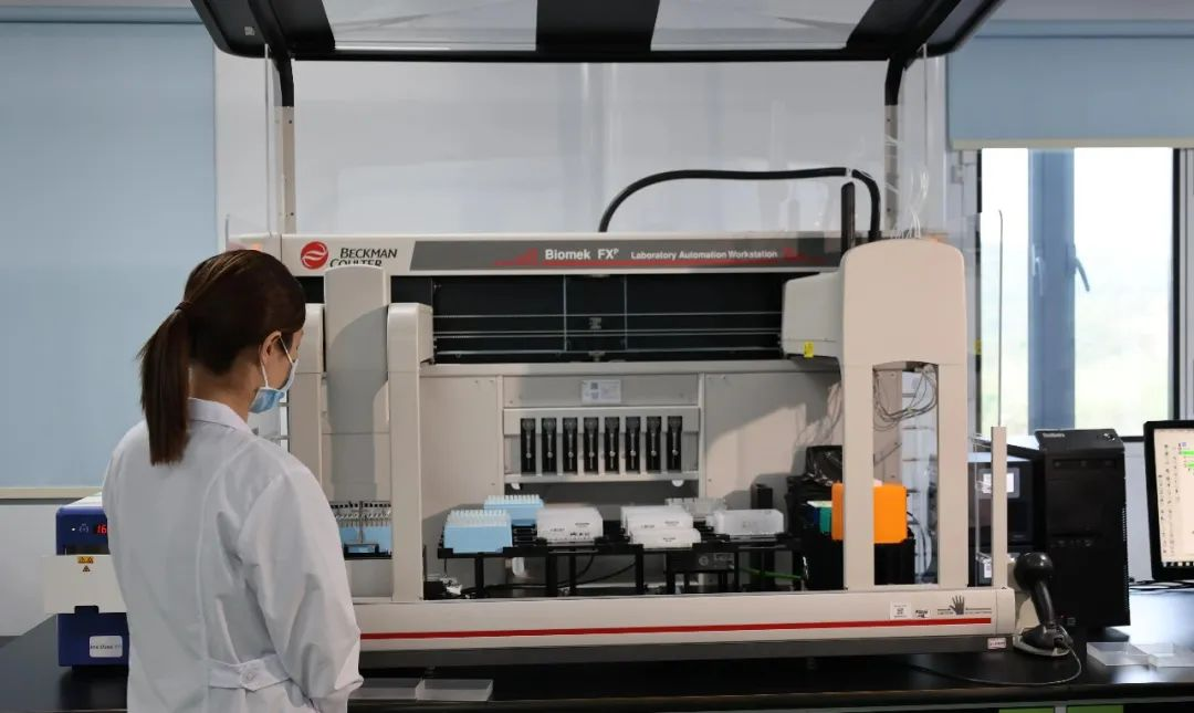 在温氏股份的基因组育种洽商室,科研东谈主员正在作念猪基因的分型。