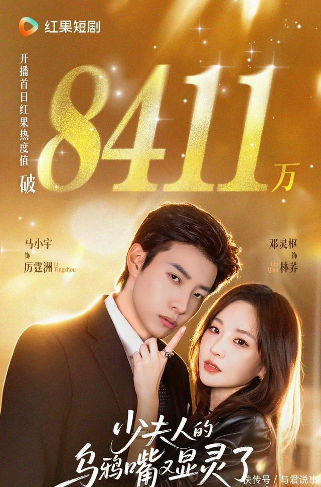 六、红果短剧《少夫东谈主的乌鸦嘴又显灵了》 马小宇、邓灵枢领衔主演。 最近挖到一部设定超崭新的剧《少夫东谈主的乌鸦嘴又显灵了》,原本以为又是腐臭的“穿越梗”,遵循一看就陷进去了,马小宇+邓灵枢,高冷傲娇霸总X戏精乌鸦嘴组合,全剧莫得糟心曲解,只消甜甜的互动和密集的笑点,看的我全程嘴角上扬太幸福了。 上线24小时红果站内热度破8411万,储藏量超160万,点赞量超260万,全网灵验播放量已突破10亿,登顶红果平台热播榜、新剧榜、热搜榜三榜冠军。