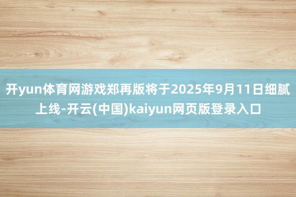 开yun体育网游戏郑再版将于2025年9月11日细腻上线-开云(中国)kaiyun网页版登录入口