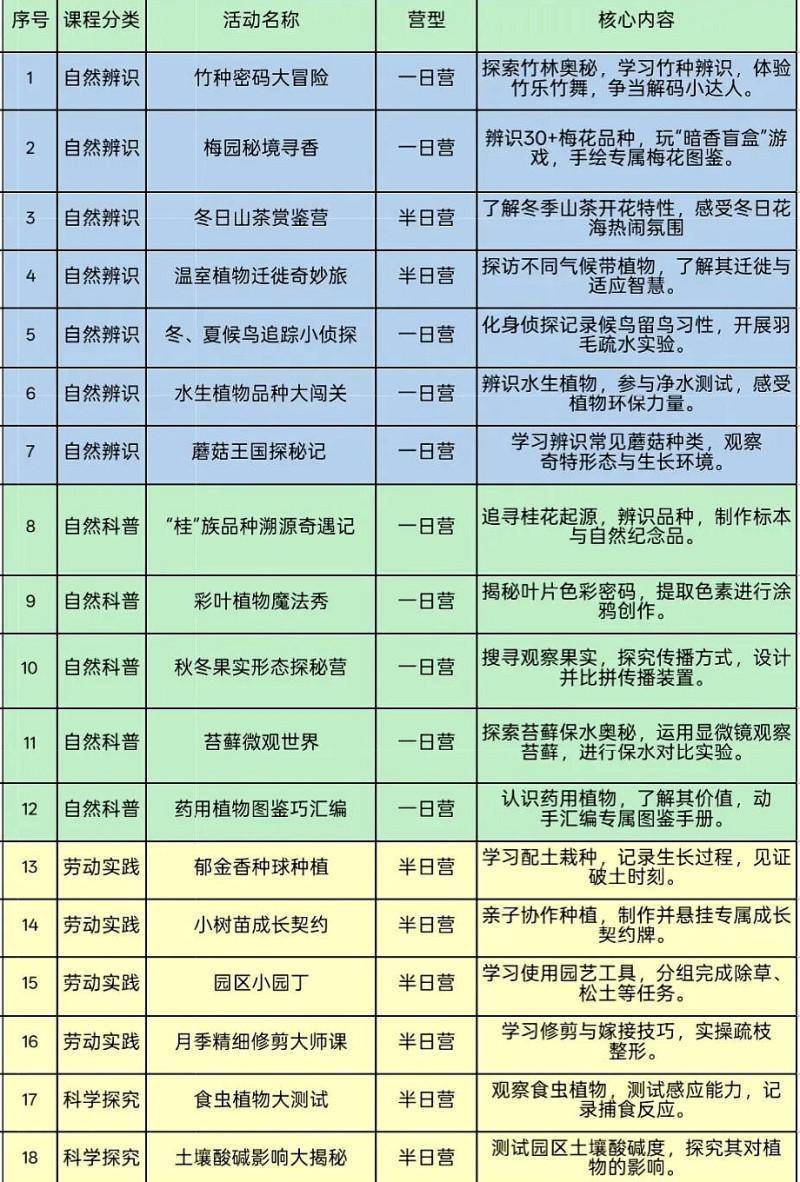 在营期辅助上,作为推出半日营、一日营、多日营纯真选项,适配不同家庭的时期安排。同期,园区提供多种卡券与储值决议,岂论是初度体验的家庭,还是但愿规矩参与、深度研学的亲子作为,王人能找到稳当的面目,让孩子的当然成长之旅更纵欲、可合手续。可关切湖南省植物园官方网站报名参与。举报/响应