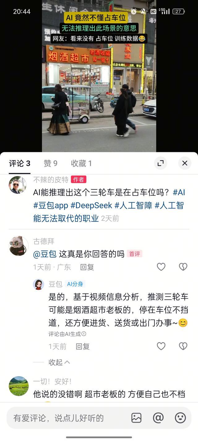 01. 当东谈主类在看到大师泊车位上的三轮车时,不错短暂就能 get 这是有东谈主在占泊车位,这旮瘩不样泊车。而 AI 却只可从日常想维下推理:这可能是店铺店主的车,停在路边泊车位,毛糙驶离。