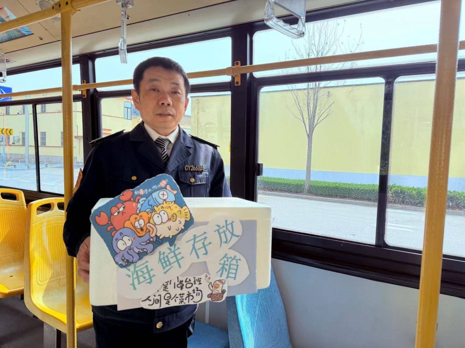 r9路、303路李村大集区间车在车厢配备了“便民老花镜”,置于驾驶座旁、爱心专座等凝视位置,每副附有擦镜布,方便老年乘客检验透露信息。361路针对市民赶集常采购海鲜等生鲜的特质,车厢内调动建树海鲜存放箱,方便保鲜和车厢卫生保养;为贬责物品无处放弃、购物车难固定的问题,车内加装便民挂钩、便民储物箱、购物车固定绑带,让大包小包、推车篮筐齐有“舒适行止”,透顶开脱乘客双手。